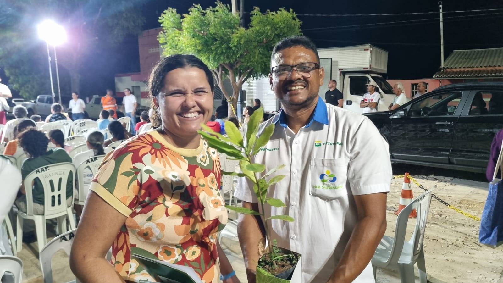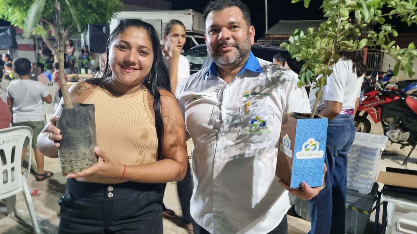 Durante o evento do Programa de Comunicação Social Regional – PCSR 2025, realizado na Praça Pública de Diogo Lopes, em Macau/RN, o Projeto Vale Sustentável apresentou uma exposição com materiais educativos e interativos sobre as iniciativas ambientais desenvolvidas. A equipe também promoveu a entrega de mudas frutíferas, incentivando o plantio e o cuidado com o meio ambiente.
