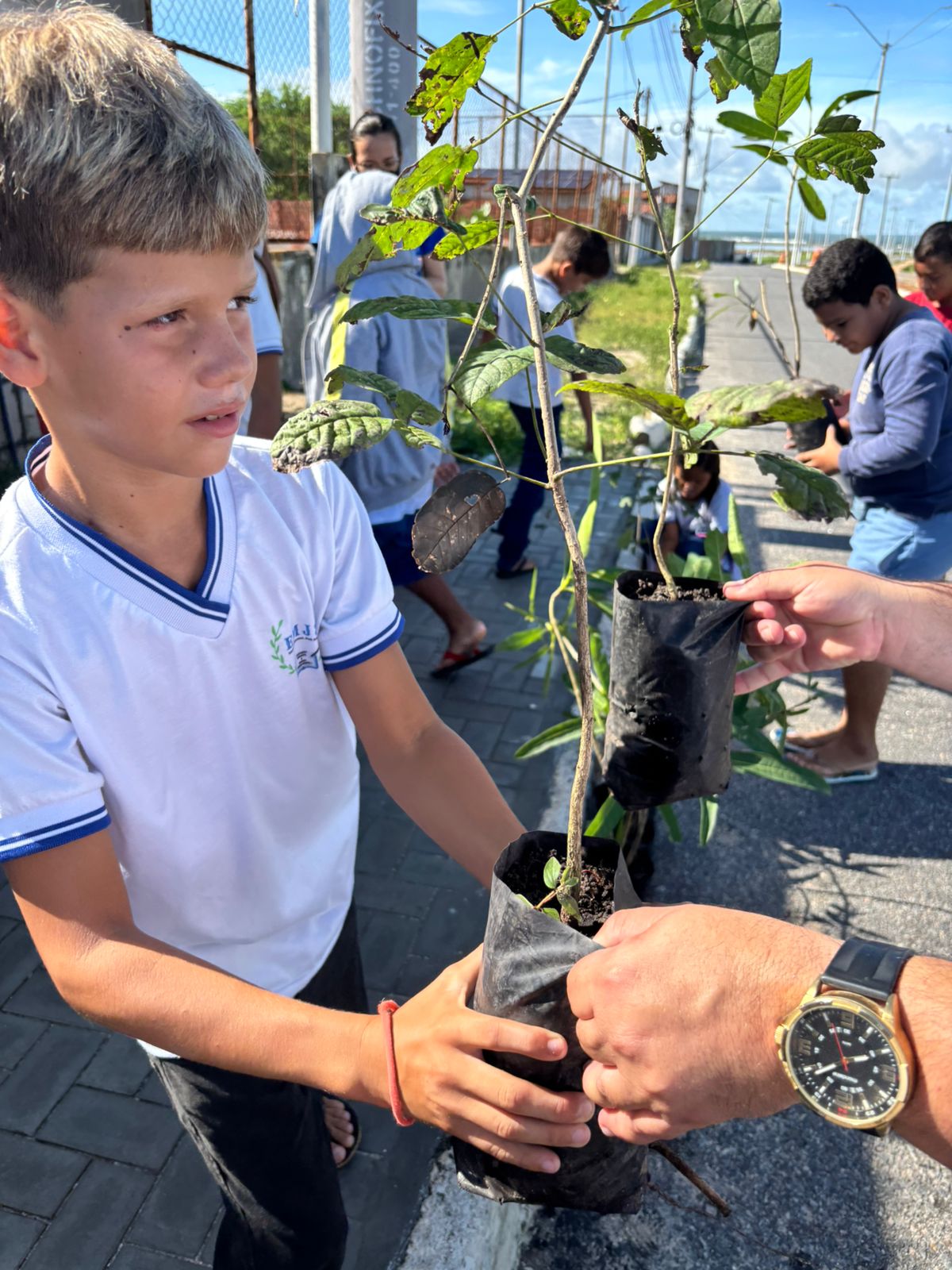 Estudantes participam de ação de arborização no Dia Nacional da Caatinga em Areia Branca