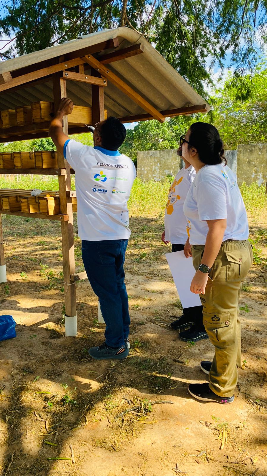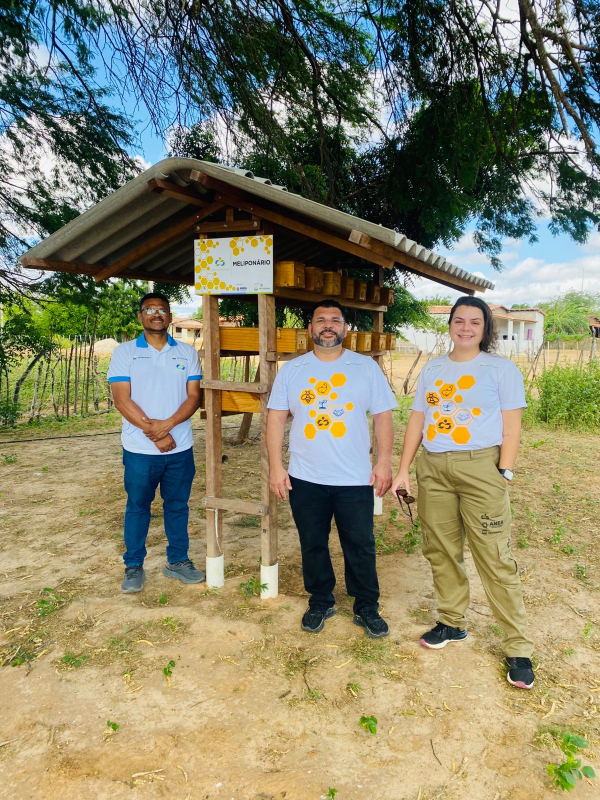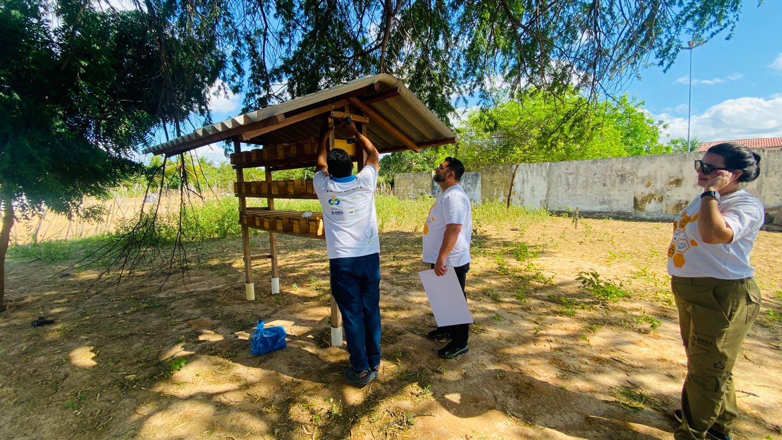 Instalação da placa do meliponário no assentamento Pirangi, em Galinhos/RN