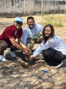 Foram plantadas mudas de manga, caju, acerola, goiaba, graviola e outras espécies que, em breve, vão oferecer sombra, alimento e um ambiente mais fresco e acolhedor para nossos estudantes.