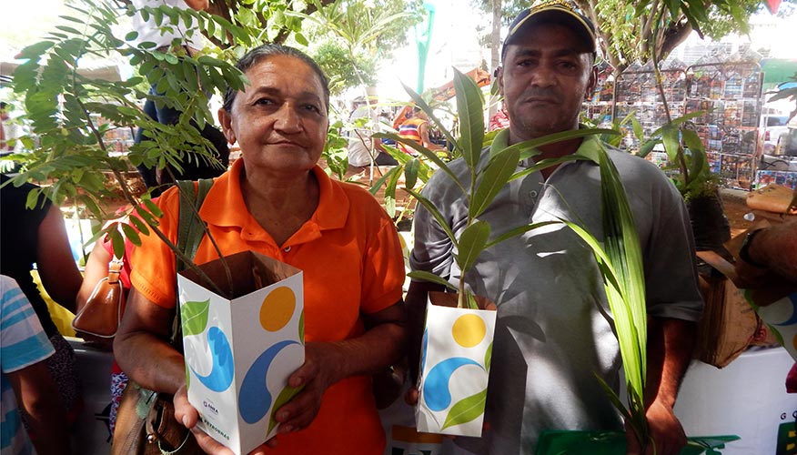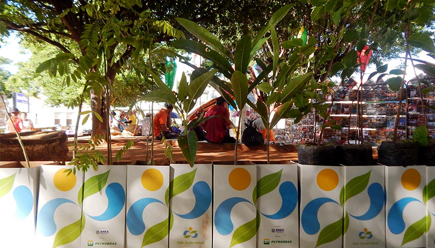 de espécies nativas e frutíferas distribuídas a comunidade na Tenda Ecológica na Praça do Rosário.